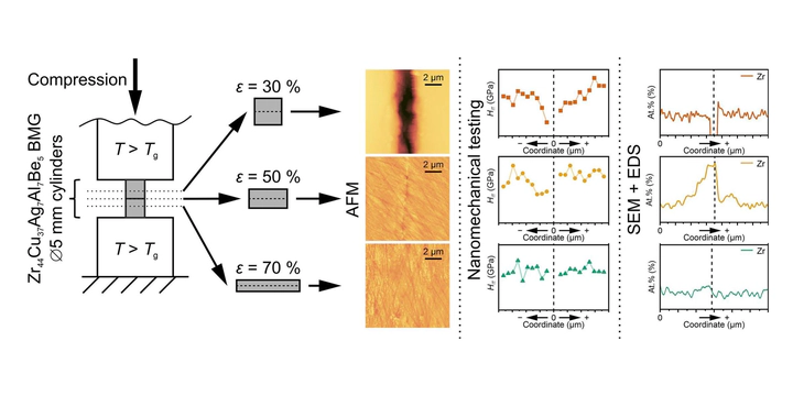The paper, titled “Seamless thermoplastic joining of ZrCu-based bulk metallic glasses via simple high-strain uniaxial compression”, presents a breakthrough method for joining bulk metallic glasses (BMGs). Our team developed a simple and scalable technique using high-strain uniaxial compression within the supercooled liquid region.
